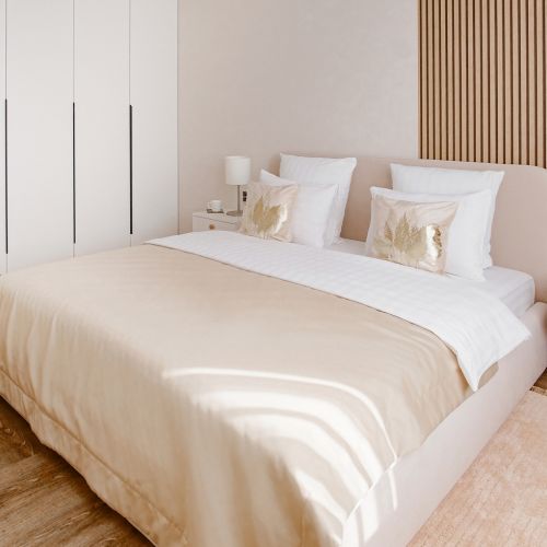 Современный многоэтажный жилой дом, в котором разместились апартаменты, возвышается на пересечении главных магистралей района – улиц Курчатова и Дзержинского. В распоряжении гостей просторный номер со светлым стильным интерьером, выдержанном в мягких пастельных оттенках. Апартаменты оснащены полноценной кухней с электроплитой, холодильником и другой бытовой техникой, ванной комнатой с ванной и стиральной машиной. В комнатах – просторная двухместная кровать и большой раскладной диван, среди прочих удобств – безлимитный интернет, ЖК-телевизор, фен.